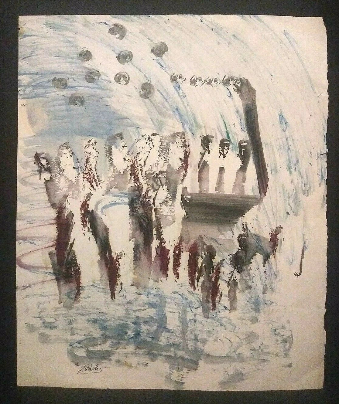 John Harrison Levee Title illegible - approx. 13"x9" - Gouache or tempra on paper dated 1955. Levee's work can be found in the following museums |